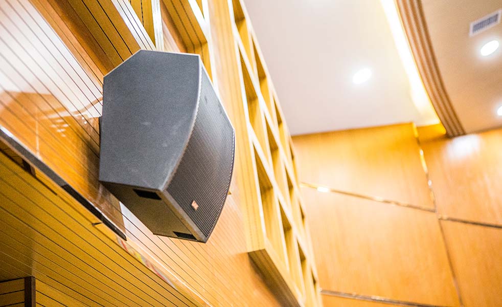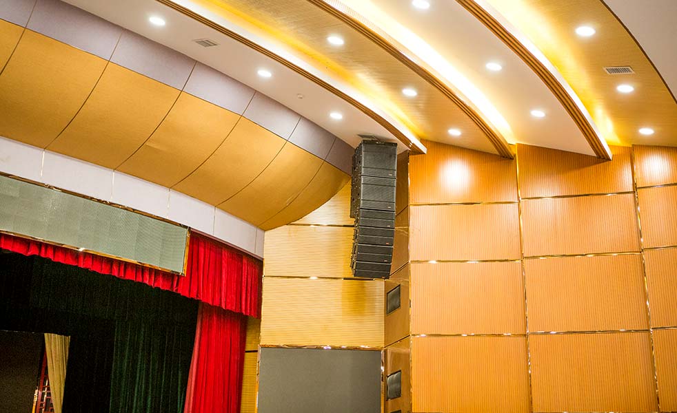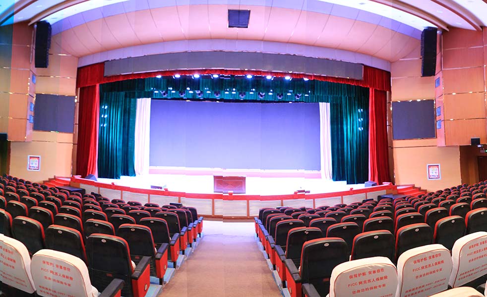 劇場內共使用8只AT110-V2兩分頻兩驅動單10寸線陣列音箱、4只ATL18B單18寸超低頻音箱,AT110-V2+ATL18B線陣列組合能夠有效解決劇場劇院的擴聲要求,大聲壓級的產品特點能夠保證聲場的均勻分布,而使用了意大利B&C 3寸鈦膜高頻驅動器,負載LAX DCH專利指向性修正號筒,保證了高音覆蓋范圍的均勻一致。