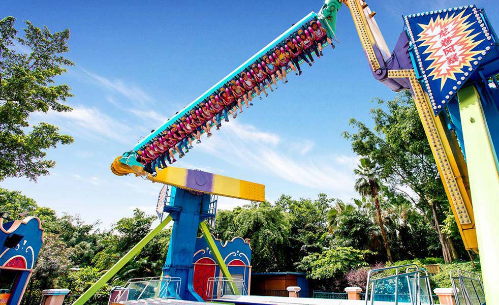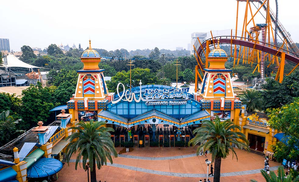 長隆歡樂世界,地處廣州番禺迎賓路,首期占地面積1000多畝,游樂設(shè)施近70項。歡樂世界引進(jìn)了瑞士、荷蘭、德國、意大利、美國等全球領(lǐng)先的游樂設(shè)備公司的設(shè)備,其中包括:垂直過山車、十環(huán)過山車、摩托過山車、U型摩天滑板和超級水車大戰(zhàn)等。