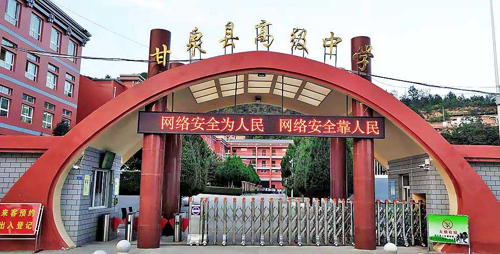 甘泉縣高級(jí)中學(xué)于2003年8月建成使用,學(xué)校占地86.5畝,總建筑面積32800平方米,總投資4300多萬(wàn)元,共有教學(xué)樓、綜合實(shí)驗(yàn)樓、餐廳、學(xué)生公寓樓和教師住宅樓五項(xiàng)主體建筑。