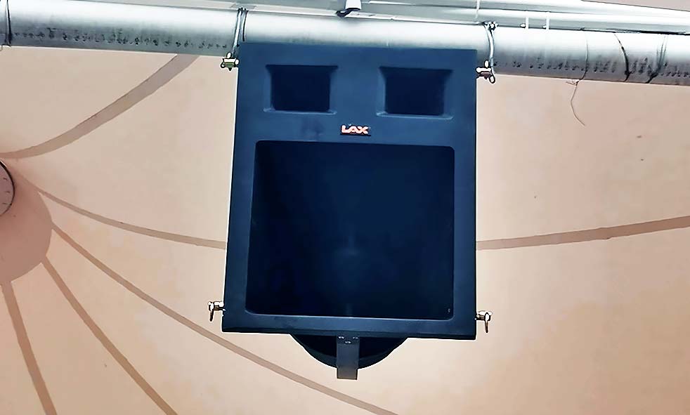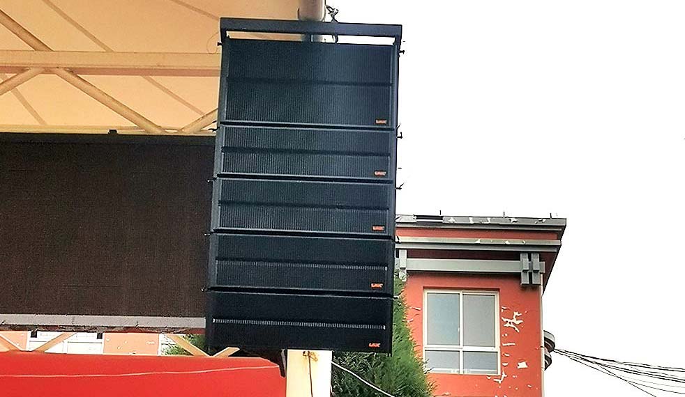 考慮到操場(chǎng)區(qū)域,要求聲場(chǎng)均勻,LAX選用4組(4只雙8線性陣列音箱AT208+1只雙15寸超低頻音箱AT215B)作為主擴(kuò)音響吊掛在主席臺(tái)左右兩側(cè),選用遠(yuǎn)程號(hào)角音箱PS3作為觀眾席補(bǔ)聲吊掛在主席上方兩側(cè),經(jīng)過(guò)精確擴(kuò)聲角度調(diào)整,能夠確保操場(chǎng)主席臺(tái)、觀眾區(qū)及運(yùn)動(dòng)場(chǎng)區(qū)域覆蓋均勻、聲音準(zhǔn)確、音質(zhì)清晰。