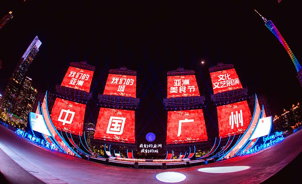 廣州亞洲美食節(jié)“我們的亞洲,我們的城”開幕式文化文藝展演在海心沙亞運廣場內(nèi)震撼上演。