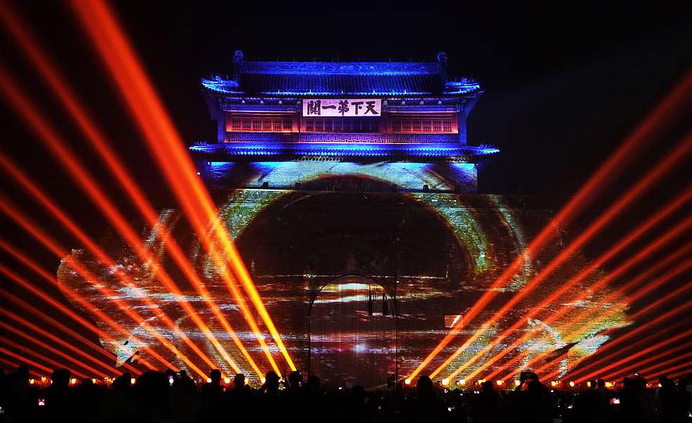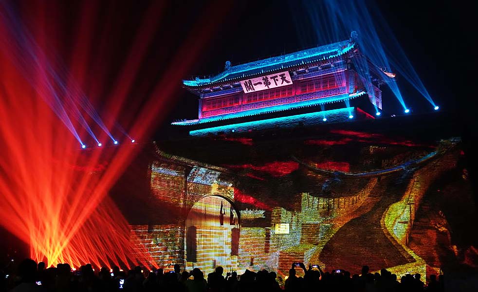 天下第一關(guān)《觀?山海》長城情境光影秀,是一場以多媒體技術(shù)結(jié)合光影科技,情、景、人、秀合一的深度互動(dòng)空間情境秀;配合最新形式的多媒體影像技術(shù)手段,讓觀眾近距離領(lǐng)略“天下第一關(guān)”的烽煙往昔與今朝美景,再現(xiàn)古城墻的絕代風(fēng)華。