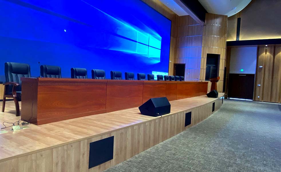 隨著信息技術的不斷發展,一個大型報告廳主要滿足中大型會議為主兼顧各種文藝、歌舞演出。我們按此功能為目標進行建設,報告廳應包含:音響擴聲系統、數字會議系統、視頻會議及錄播系統、中控系統、LED大屏系統、舞臺燈光系統、舞臺機械幕布系統等。 需建設音響擴...