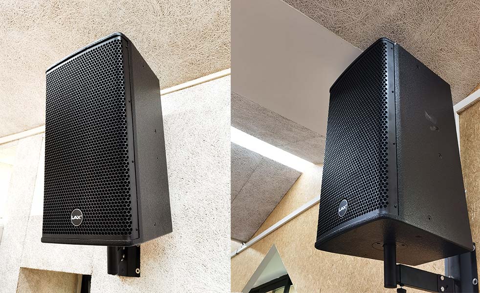 銳豐選用6只單12寸二分頻單驅動全頻揚聲器SX212,均勻壁掛安裝在階梯教室前中后位置,經過精確擴聲角度調整,能夠確保整個教室覆蓋均勻、聲音準確、音質清晰。同時配置有功放、調音臺、反饋抑制器、數字音頻矩陣處理器,以保證高品質的音質輸出。話筒選擇一拖八手持話筒和一拖二會議話筒,滿足會議、教學發言需求。