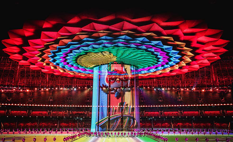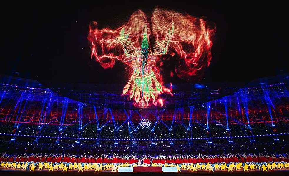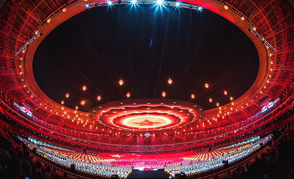 第二屆青年運動會開幕式于2019年8月8日20時在山西體育中心紅燈籠體育場舉行,總時長90多分鐘。開幕式由孟可擔任總導演 ,由開幕儀式、文體表演和主火炬點燃儀式構成。開幕儀式上,34個體育代表團依次入場,文體表演以“逐夢新時代”為主題,分為序篇《時代召喚》、第一篇章《紅日照東方》、第二篇章《水擊三千里》、第三篇章《萬里長空行》、點火環節《涅槃重生》和集體高唱《我愛你中國》。整個表演共有4300余名參演人員,采用VR技術、激光投影、透視成像等呈現方式,將運動項目與山西文化深度融合、體育元素與文藝元素有機結合,將太行、黃河、長城和晉商文化貫穿其中,并把威風鑼鼓、背棍、竹馬戲、風火流星等山西獨特的非物質文化遺產表演與體育項目相結合進行展示,讓觀眾感受原汁原味的三晉文化。