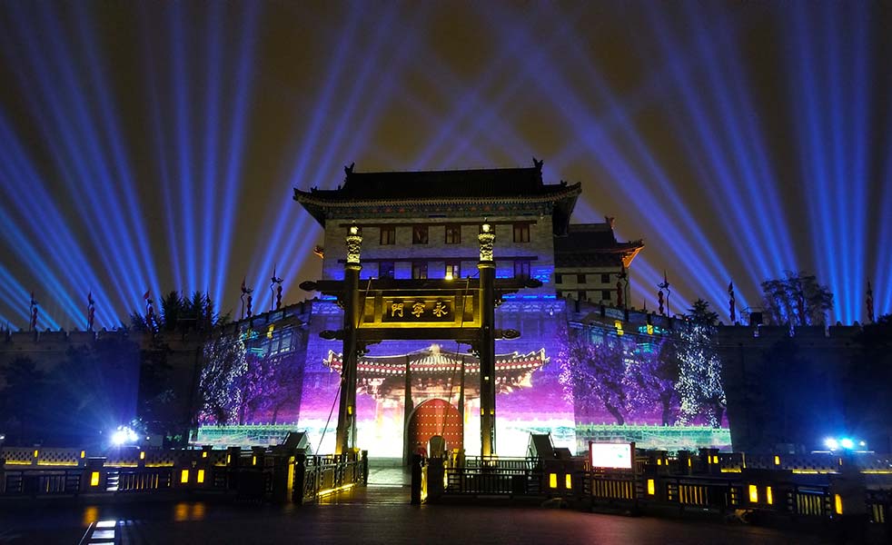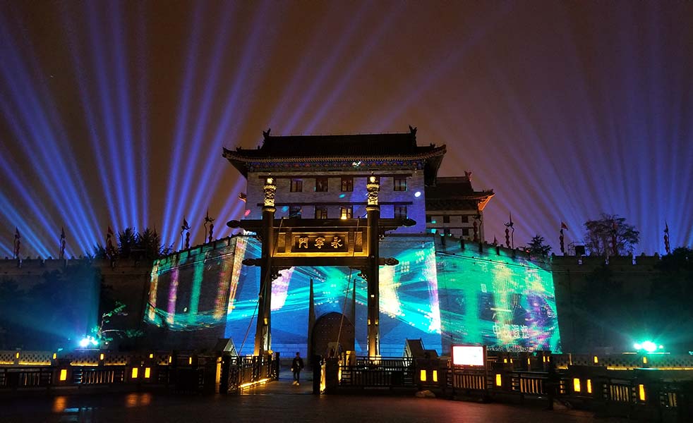 2019西安的跨年,在西安城墻文化廣場,三個光影節目上演:永寧門《長安頌》大型光影藝術表演、西南城角“嗨皮·陜博”光影秀、東南城角“遇見·小武士”光影秀,LAX再次為西安市民唱出古城的聲音、震撼的聲音!