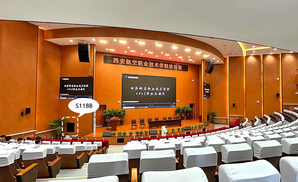 舞臺兩側各設置1只 LAX S118B超低音揚聲器,對擴聲系統低音部分進行補償。