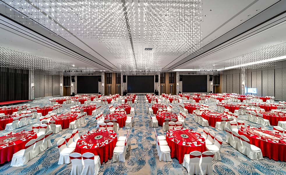 由LAX音響傾力打造兩個大型的國際宴會廳,3個主題婚宴廳,兩個多功能宴會廳,3個多功能會議廳及云頂360度旋轉自助餐廳。