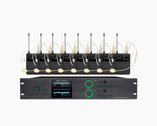 采用八通道的接收設計,可連接八支無線話筒;一鍵修改四通道頻率組,四通道同時修改頻率組,同時亦支持手動修改每個通道的頻率;