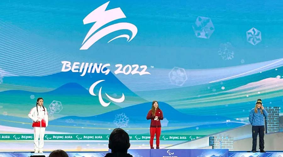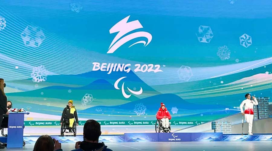 與冬奧會頒獎臺相比較,冬殘奧會的頒獎臺設置了無障礙坡道,便于乘坐輪椅的獲獎運動員能夠順暢地上臺領獎。考慮到冬殘奧頒獎儀式中獲獎運動員有坐姿和站姿,還有視障人群,儀式團隊對頒獎禮儀人員的引導點位和步速進行了相應調整,對頒獎流程進行了細化。這些無障礙設施和頒獎廣場運行團隊的人性化服務相得益彰,將充分展現中國殘疾人事業的發展水平和中國社會文明程度,也讓來自國外的殘疾人運動員和官員感受到中國作為東道主的人文關懷。