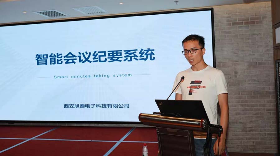 西安旭泰電子科技有限公司技術經理李波講解了智能會議紀要系統(tǒng)在會議中的實用性,并在現(xiàn)場進行了應用演示。