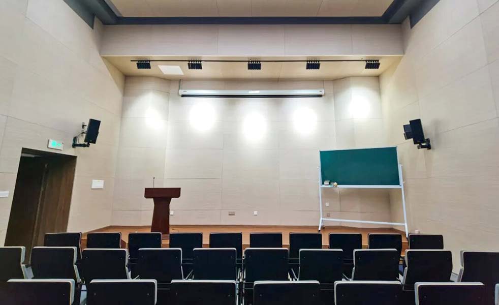 此報告廳采用LAX-AT系列線陣專業擴聲系統,根據使用要求,重點側重于語言清晰度、傳聲增益,以及多種功能應用的靈活轉換和方便的操作性等方面。擴聲系統滿足各種會議、報告會、教學、培訓等會議語言擴聲需求。系統具有良好的音響效果與優良的語言清晰度。