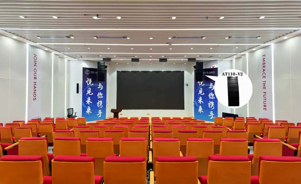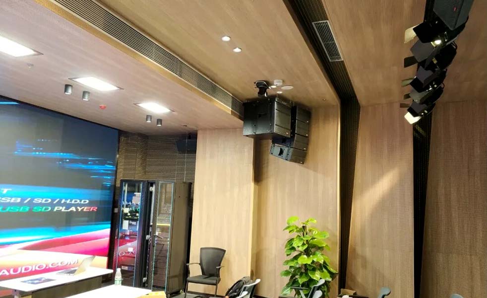 報告廳中安裝FP12A+兩分頻單驅動全頻音箱;而會議室安裝的是LAX最新研發的緊湊型束波擴聲音柱系統PTL404,另還有音視頻系統。