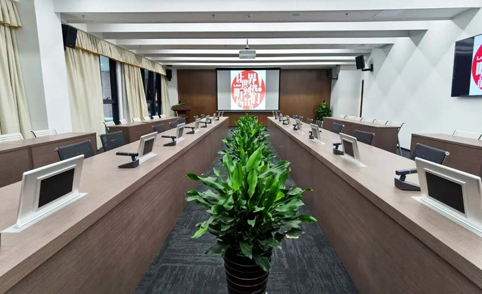 根據場地使用需要,將專業音箱合理分布于會議室內,讓與會者都能感受到擴聲聲音清晰,聲場均勻,聲音飽滿,層次清晰,使得每一位領導人下達的決策都能被清晰地聽見,極大提高了決策下達的明確性。