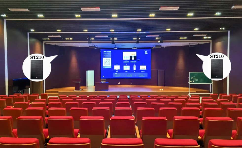 根據場地面積和使用用途,主擴聲選擇了適用多種擴聲場合的多功能音箱(ST系列),以合適的位置和最佳擴聲角度安裝于舞臺前方兩側,使聽眾區的邊角、后區都能擁有足夠的清晰度和聲場均勻度。配置Live oneM返聽音箱,能夠覆蓋在臺前聽眾及主席臺的講話者,讓聲場覆蓋更加均勻。功率放大器、調音臺和周邊處理器的配置,可以增大增益效果,防嘯叫抗干擾,穩定現場聽音效果,忠實還原音箱真實的聲音,保障系統設備的安全性和穩定性。