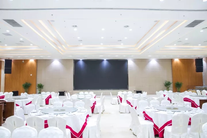 可舉辦各類型年會、晚會、婚宴、報告會、論壇、大型宴會等,總面積2700平方米,可同時容納1200人就餐,并配備現代3D燈光、舞臺、高品質音響及超高清LED電子屏,是目前醴陵地區規模最大、檔次最高、配置最齊全的宴會場所。