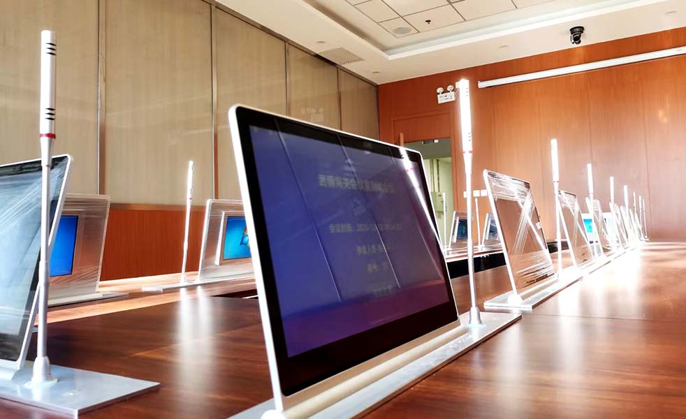 會議室采用無紙化會議終端NOC620W+無紙化會議軟件NOC611W共14臺;揚聲器則分別搭配了QS10與QS08靈動系列音箱。