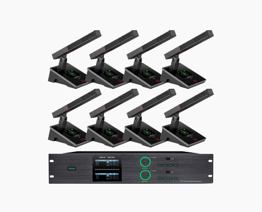 采用四通道的接收設計,可連接四支無線會議話筒;