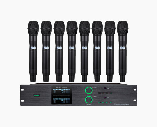 采用八通道的接收設計,可連接八支無線話筒;一鍵修改四通道頻率組,四通道同時修改頻率組,同時亦支持手動修改每個通道的頻率;